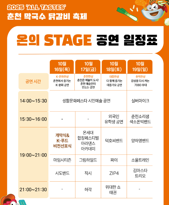 메밀의 시원한 향기, 매콤한 닭갈비의 불맛, 그리고 도시 전역에 울려 퍼지는 음악과 웃음소리 —