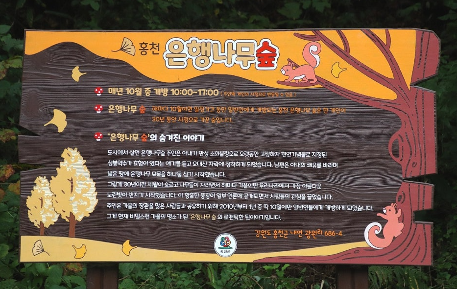 “홍천 은행나무숲은 10월에만 볼 수 있습니다.”