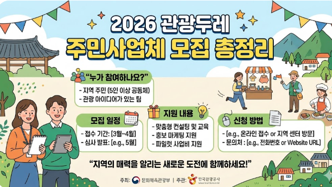문화체육관광부와 한국관광공사가 추진하는 ‘2026 관광두레 주민사업체’ 모집이 시작됐습니다.